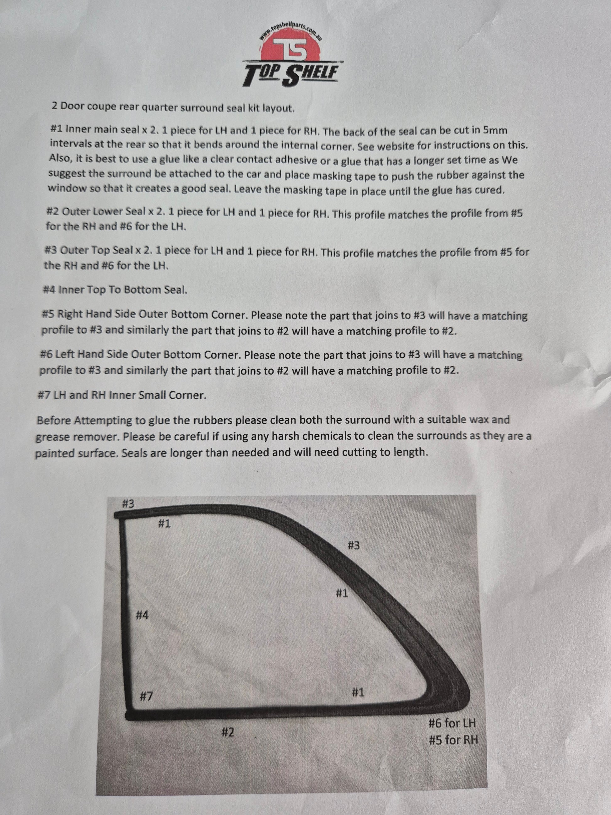 Videos will be added to the website soon on how to remove the surrounds and replace the rubbers trims/seals. It is highly recommended to remove the surrounds to replace the trim rubbers. The placement/Gluing of the Rubber Trims/Seals can be a hard task. Top Shelf recommend fixing the seals with 3m VHB Double sided tape and testing the surround against the Glass/Chassis to make sure you are happy with the angle of the rubbers. Once happy Glue can be applied to rear.